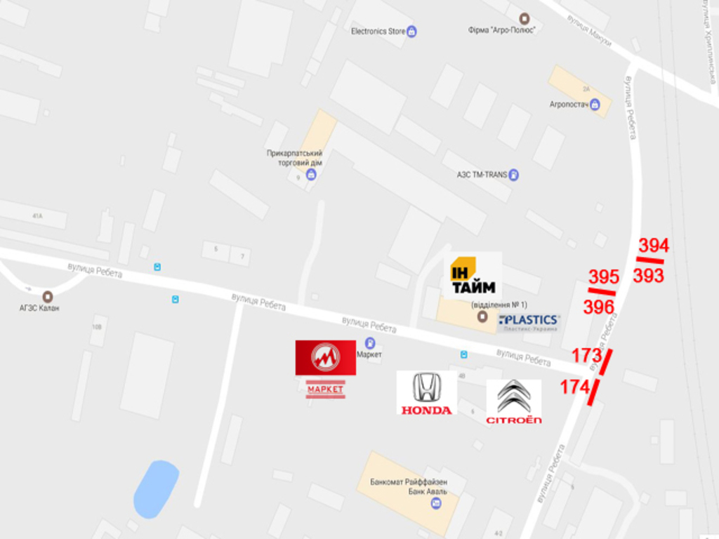 Орієнтир: Ребета, до вул. Микитинецької, до ОККО ст.А